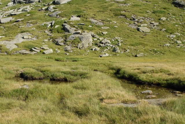 Les plateaux d’altitude, au niveau des sources, offrent souvent ce type de milieu, que la linaigrette peut coloniser. Parmi les insectes aquatiques, on peut trouver, selon l’exposition, des éphémères comme Cloeon simile et chez les Trichoptères, Limnephilus coenosus, L. sparsus, L. hirsutus, Oligotricha striata.