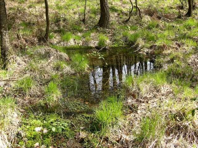 Ces mares, généralement dans des prairies humides en bordure de ruisseaux, peuvent être occupées par la glycérie aquatique. C’est un milieu type pour les éphémères tels que Leptophlebia marginata, ou encore Siphlonurus aestivalis. Ces mares ont tendance à s’assécher en été. L’environnement boisé (saulaie, aulnaie) favorise l’accumulation de feuilles mortes qui permet, selon la région, au Trichoptère Glyphotaelius pellucidus de construire son fourreau remarquable. D’autres espèces y sont possibles, à savoir parmi les plus caractéristiques Grammotaulius nigropunctatus, Trichostegia minor, Limnephilus auricula.