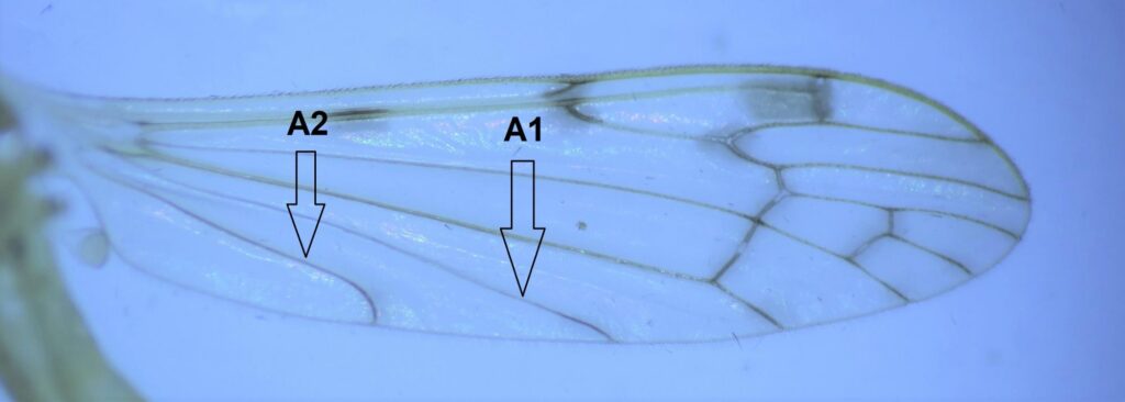 • Seconde nervure anale doucement courbée vers l’arrière (contrairement à la famille des Trichoceridae chez qui la nervure A2 est rapidement courbée à un angle de 90°).