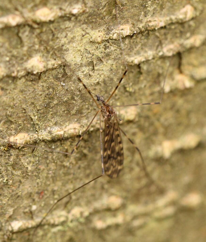 Détermination d’espèces très communes, aisées à reconnaître et qu’il est inutile de capturer : Limonia nubeculosa est très fréquente et inconfondable. Son aspect avec de multiples taches ombrées sur les ailes et trois anneaux sur chacun des fémurs permet son identification sans conteste.