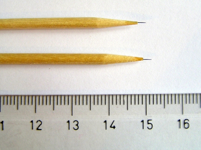• aiguilles emmanchées sur des mandrins ou fixées à la cyanolite sur des supports,